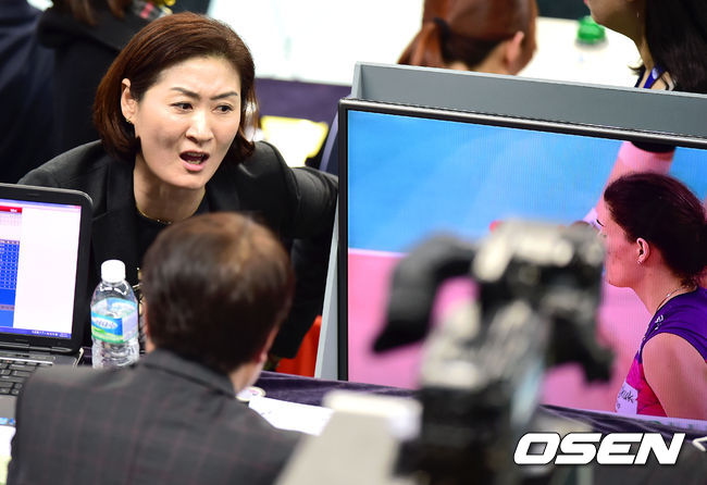 경기 종료후 흥국생명 박미희 감독이 5세트 비디오 판독에 대한 판정에 항의하고 있다. / youngrae@osen.co.kr