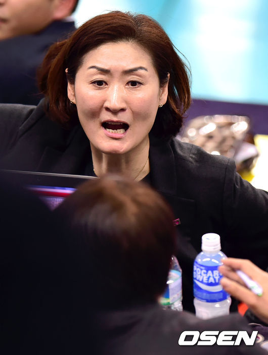 흥국생명 박미희 감독이 5세트 비디오 판독에 대한 판정에 항의하고 있다. / youngrae@osen.co.kr