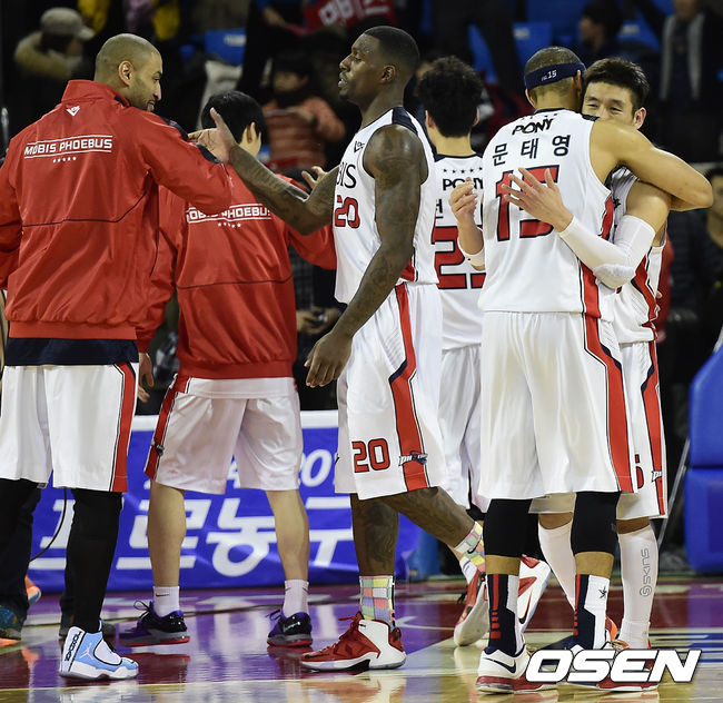경기종료후 승리한 모비스 선수들이 승리의 기쁨을 나누고 있다./greenfield@osen.co.kr