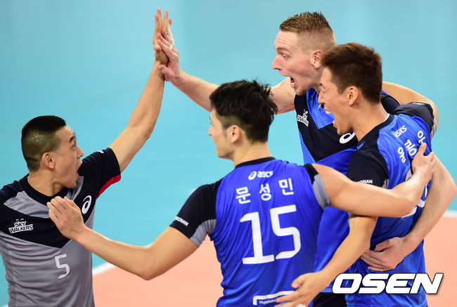 승리를 거둔 현대캐피탈 선수들이 기뻐하고 있다. / youngrae@osen.co.kr