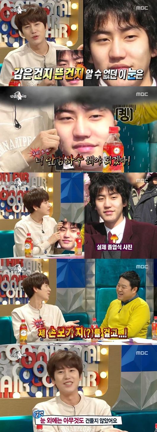 17일 오후 11시 10분 방송된 MBC '황금어장 라디오스타'에는 규현이 자신의 고등학교 졸업사진을 공개하며 "쌍수해서 광명찾았다"고 자진남세하는 장면이 담겼다.