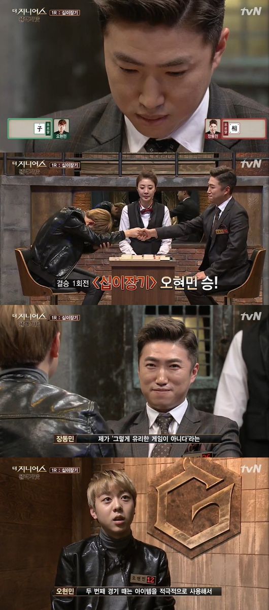17일 오후 방송된 tvN 예능프로그램 '더 지니어스: 블랙 가넷'(이하 '더지니어스3') 최종회에는 장동민과 오현민의 진검승부가 펼쳐졌다. 결승전 게임은 2, 6회전 데스매치였던 베팅 가위바위보와 7회전 데스매치였던 십이장기, 새로운 게임인 같은 숫자 찾기.