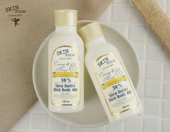 스킨푸드는 겨울철, 갈라지고 메마른 바디 피부 가뭄을 막아 줄 '시어버터 리치 바디 오일'을 선보였다.