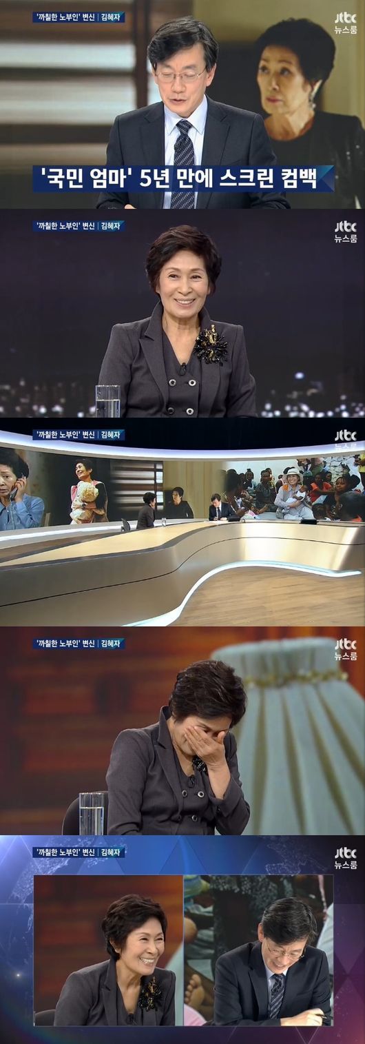 김혜자는 18일 오후 방송된 JTBC '뉴스룸' 2부에 출연해 손석희 앵커와 대담을 나눴다.