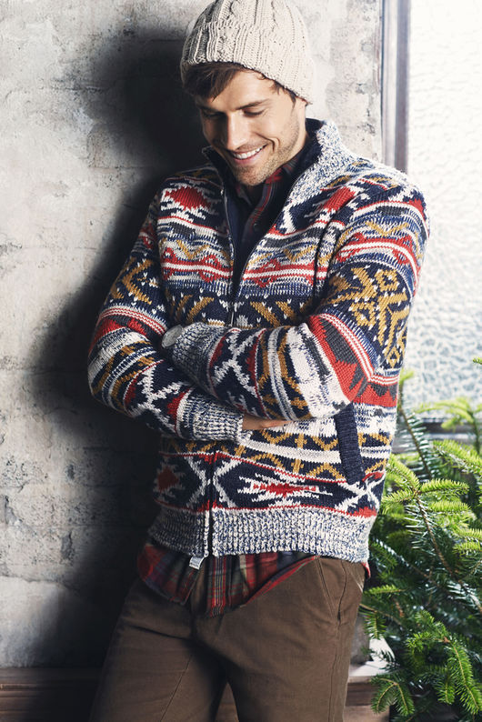 캐주얼한 스타일을 추구하는 남성이라면 이 노르딕 패턴의 스웨터에 패딩과 워커, 백팩 등을 매치해 경쾌하면서 활동적인 느낌을 살려보자. 따뜻함이 배가 되면서 스타일리시한 룩을 연출할 수 있다.