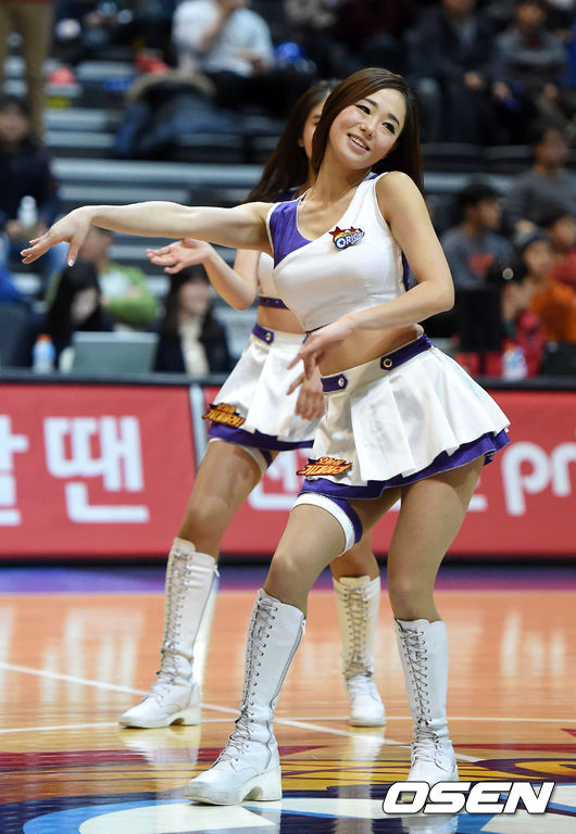 경기에 앞서 오리온스 치어리더가 화려한 공연을 펼치고 있다.