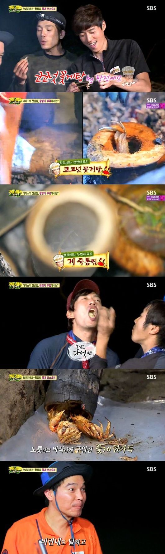 이날 임창정은 코코넛으로 냄비를 만들어 그 안에 꽃게를 넣고 코코넛 꽃게탕을 만들었으며, 병만족은 죽통 안에 꽃게를 넣어 찜을 했다.