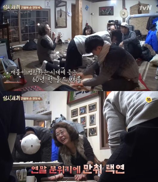 19일 오후 9시 50분에 방송된 케이블채널 tvN '삼시세끼' 마지막 회에는 윤여정의 지휘 아래 만두를 빚는 최화정, 이서진, 옥택연, 김광규, 이승기의 모습이 전파를 탔다.