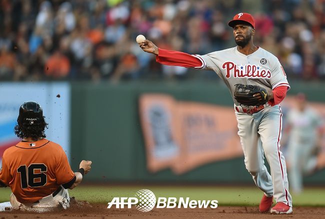 다저스는 20일(한국시간) 내야수 지미 롤린스 트레이드를 공식 발표했다. 필라델피아 시절의 롤린스. ⓒAFPBBNews = News1(무단전재 및 재배포 금지)