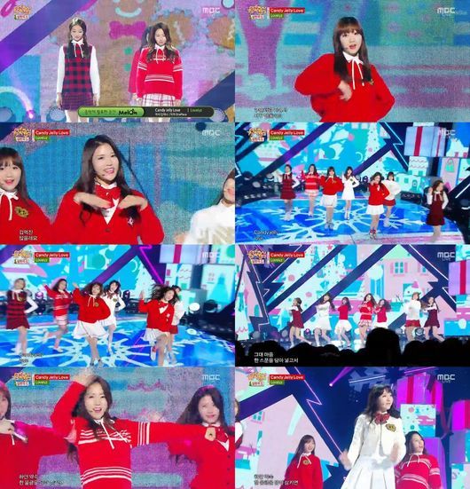 이날 방송에서 이들은 크리스마스를 연상케 하는 레드칼라의 의상을 입고 무대에 올랐다. 체크무늬 치마와 핑크 재킷, 흰색 반스타킹으로 상큼한 스쿨룩을 완성했다. 팀 이름처럼 사랑스러운 표정으로 노래하는 멤버들의 모습이 눈길을 끌었다.