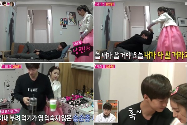 김소은은 20일 방송에서 평소 다정다감한 남편에게 '내조퀸'이 되겠다며 한복을 입고 '김순종'으로 거듭나는 모습을 보여주며 눈길을 끌었다.