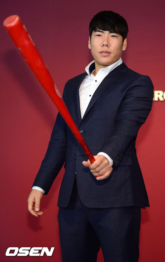 21일 오후 서울 목동구장에서 강정호 메이저리그 진출 관련 약식 인터뷰 때 강정호가 포즈를 취하고 있다.