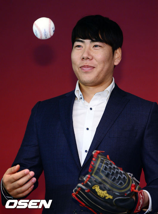 21일 오후 서울 목동구장에서 강정호 메이저리그 진출 관련 약식 인터뷰 때 강정호가 포즈를 취하고 있다.
