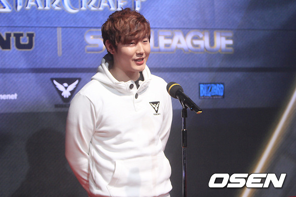 21일 서울 용산 온게임넷 e스포츠 상설경기장에서 열린 '스베누 스타리그 32강' 조추첨식 진행 현장에는 오랜만에 모습을 드러낸 허영무 서지수 이성은 김성현 박재혁 등 추억의 게이머들이 함께 했다. 임진묵이 무대 인사를 하고 있다.