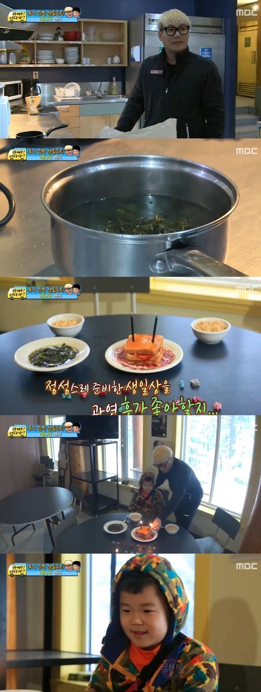 윤민수가 후의 9살 생일을 위해 깜짝 식탁을 준비했다.