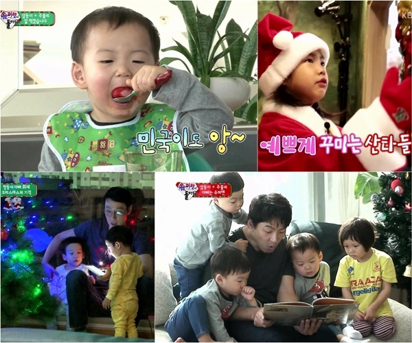 ‘슈퍼맨’의 특별한 만남은 크리스마스 의미를 되새기게 했다. 사랑은 평소 가장 좋다고 말했던 ‘대한-민국-만세’와 특별한 만남을 가졌다. 삼둥이가 오기 전부터 머리도 빗고, 긴장한 모습으로 기다리던 사랑은 벨이 울리자 아빠보다 먼저 뛰어나가며 설레는 표정을 감추지 않았다.