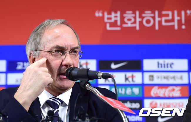 슈틸리케 감독이명단 발표를 하고 있다.