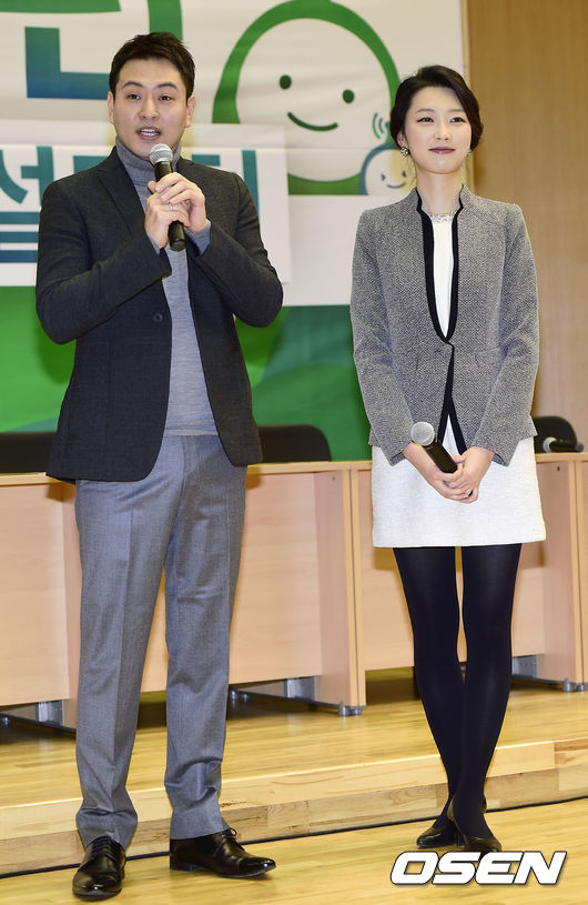 송영훈, 유지원 아나운서가 포토타임을 갖고 있다.