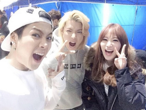 갓세븐 잭슨과 M.I.B 강남, 카라 허영지가 익살스러운 셀카를 공개했다.