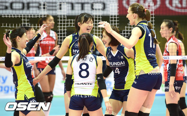 경기종료 후 현대건설 선수들이 승리의 기쁨을 나누고 있다. / soul1014@osen.co.kr