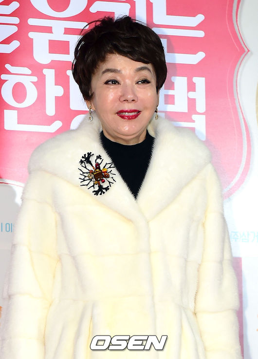 배우 김수미가 22일 오후 서울 자양동 롯데시네마 건대입구점에서 열린 영화 '개를 훔치는 완벽한 방법' (감독 김성호) VIP시사회에 참석해 포토타임을 갖고 있다.