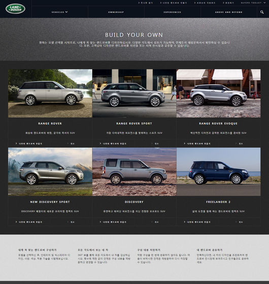 온라인 시승 센터, 나만의 랜드로버 만들기 등 다양한 고객 참여 페이지 구성