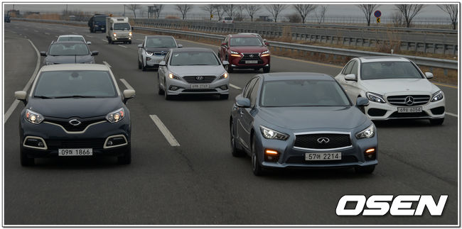 한국자동차전문기자협회가 주관관하는 ‘2015 올해의 차(Car Of The Year)’에 선정 된 인피니티 Q50. 아래 사진은 ‘2015 올해의 차(Car Of The Year)’ 최종 후보애 오른 10개 차량 및 협회 실차 테스트 장면. /촬영 카리포트 임재범 기자.
