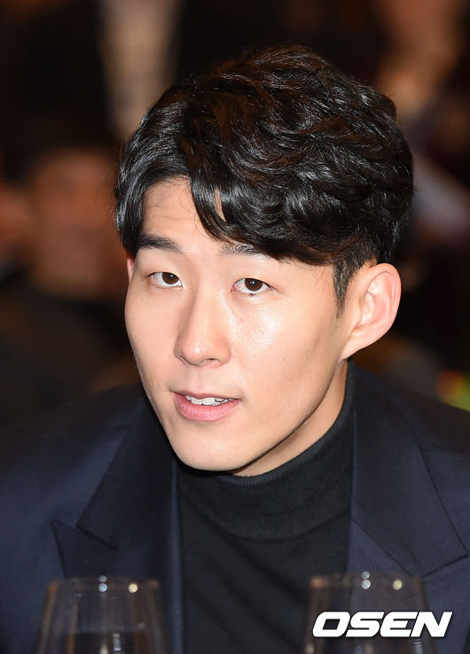 시상식에 참석한 손흥민이 관계자들과 이야기를 나누고 있다.