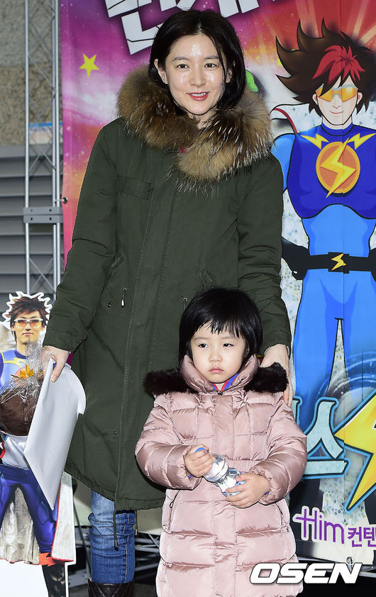 23일 오후 서울 서초동 한전아트센터에서 열린 '스페이스 번개맨:번개맨의 비밀3' 공연에서 배우 이영애와 딸 정승빈이 함께 포토타임을 갖고 있다.