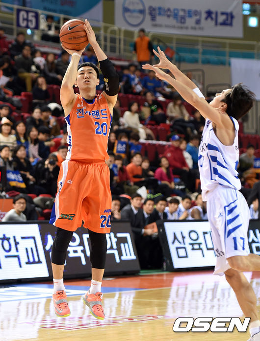 3쿼터 전자랜드 정영삼이 3점슛을 시도하고 있다.