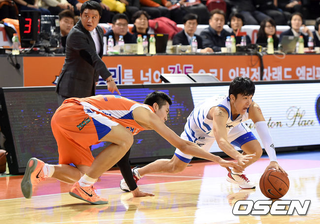 3쿼터 양팀 선수들이 루즈볼 다툼을 하고 있다.