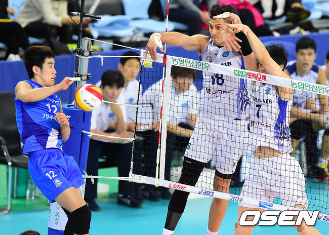 23일 오후 인천 서운동 계양체육관에서 '2014-2015 NH농협 V-리그' 남자부 대한항공과 우리카드의 경기가 열렸다.