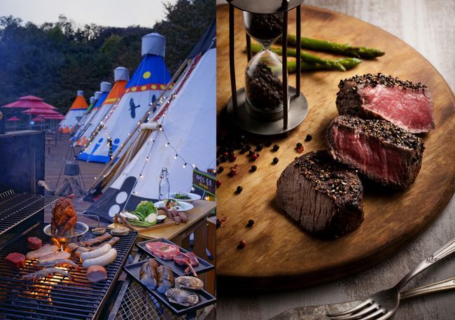 가격은 성인 15만 원, 어린이 7만 원(1인 기준/세금, 봉사료 포함). ‘캠핑 인 더 시티’는 아차산에 둘러싸인 제이드가든에 위치해 있으며, 이색적인 인디언텐트에서 프리미엄 캠핑 장비를 활용해 바비큐 요리를 즐길 수 있는 것이 특징이다.