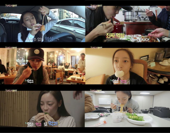 '하라 ON&OFF' 관계자는 "처음엔 구하라가 끼니를 놓치지 않는다는 말을 믿지 않았다. 그런데 본인이 직접 찍어온 셀프 카메라를 확인한 순간 고개를 끄덕였다. 구하라가 음식을 보면 나오는 표정 또한 관전 포인트다"고 전했다.
