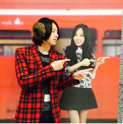 공개된 사진 속 김희철은 태연의 사진이 붙은 벽 앞에 서서 그의 포즈를 똑같이 따라하고 있는 모습이다. 특히 그는 새빨간 체크무늬 재킷과 털귀마개로 독특한 패션센스를 뽐내고 있어 눈길을 끈다.