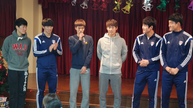 수원 삼성의 방찬준, 전현욱, 한성규, 함석민, 장현수, 최주용 등 신인 선수 6명은 23일 유스 출신 선배인 민상기, 구자룡, 이종성, 고민성과 함께 경기도 수원시 장안구 하광교동에 위치한 영유아 보호 양육시설인 경동원을 방문하여 어린이들과 즐거운 시간을 보냈다.