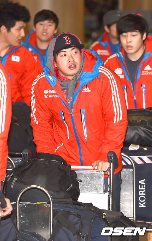 봅슬레이 서영우가 입국장에 들어서고 있다.