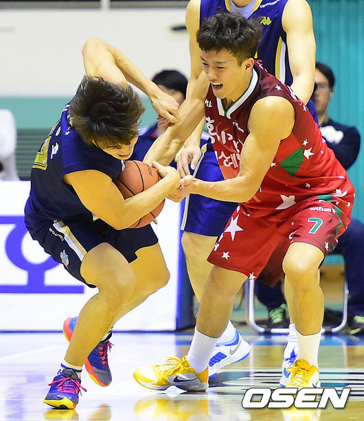 1쿼터, KCC 신명호가 KGC 박찬희의 공을 빼앗아내고 있다.