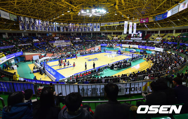 3쿼터, 농구장을 찾은 팬들이 경기를 즐기고 있다.