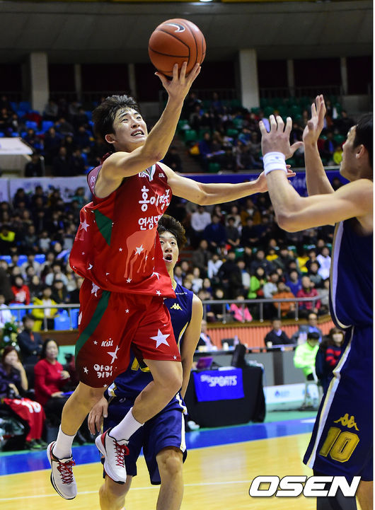 4쿼터, KGC 강병현이 돌파에 이은 슛을 시도하고 있다.