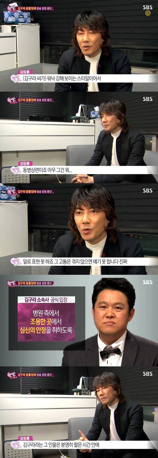 공황장애로 10년간 약을 복용한 김장훈은 “김구라씨가 워낙 강해보이는 스타일이서 그가 응급실로 실려갔다는 소식이 굉장히 충격적이었다”고 말했다.