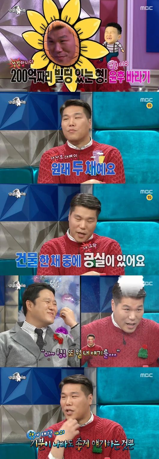 MC 김국진은 “150억 빌딩 있는 형”이라고 서장훈을 소개했다. 그러나 김구라는 “정정해달라. 200억이다. 가치가 올랐다”고 폭로해 서장훈을 민망하게 만들었다.