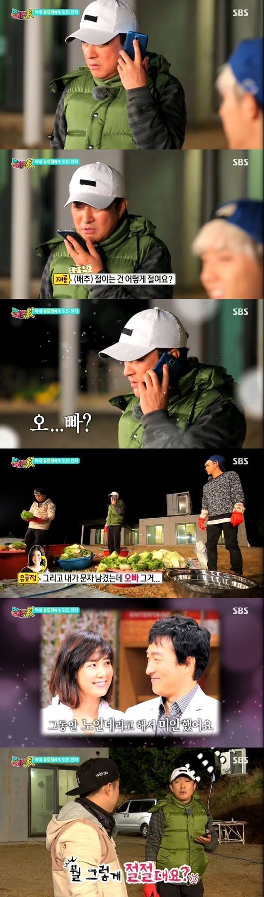24일 오후 방송된 SBS 예능프로그램 '즐거운 가-에코빌리지'(이하 '즐거운가')에서 이재룡은 김장을 담그던 중 아내 유호정에게 배추 절이는 법을 묻기 위해 전화를 걸었다.