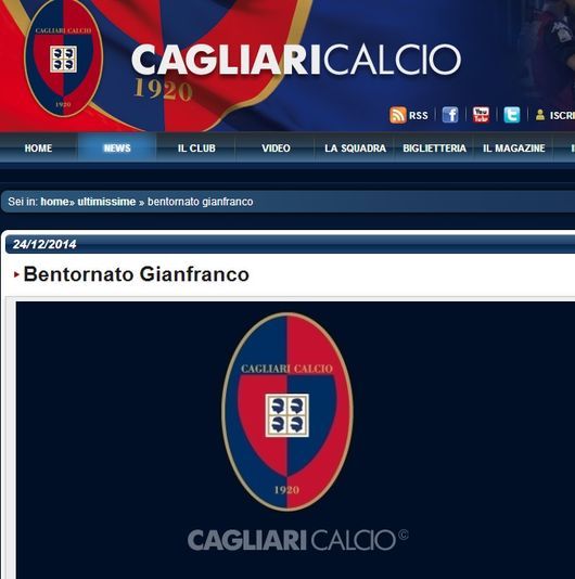 칼리아리 공식 홈페이지 캡처.