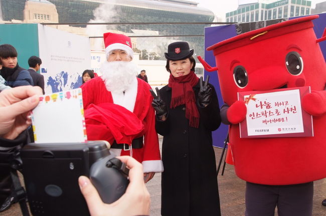 전달된 즉석카메라 인스탁스와 필름은 지난 24일 오전 서울 중구 서울광장에서 열린 ‘구세군 아름다운 나눔 전달식’ 행사 참석자와 어려운 이웃을 위해 기부에 참여하는 시민들을 대상으로 즉석사진을 찍고 선물하는 이벤트로 활용됐다.