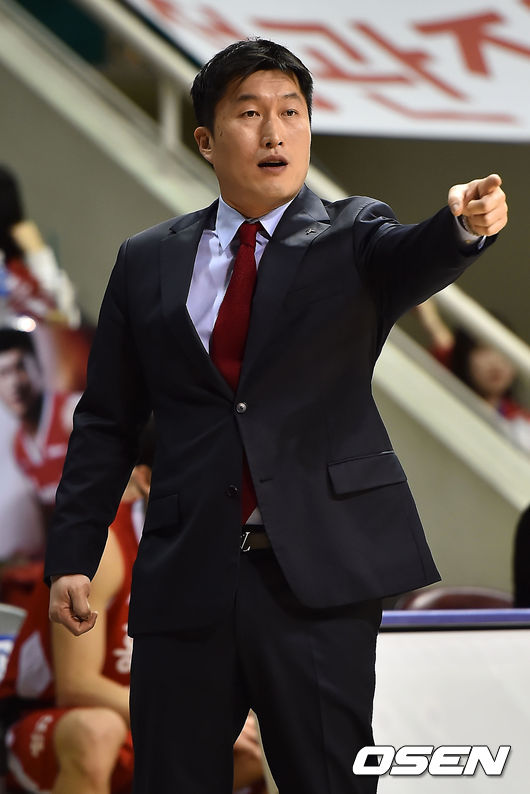 26일 오후 안양실내체육관에서 열린 '2014-2015 KCC 프로농구' 안양 KGC와 부산 KT의 경기, 1쿼터 KGC 이동남 감독 대행이 지시를 내리고 있다.