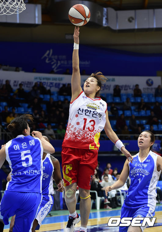 26일 오후 인천 도원체육관에서 열린 '2014-2015 KB국민은행 여자프로농구' 신한은행과 우리은행의 경기, 1쿼터 신한은행 김단비가 레이업슛을 시도하고 있다.