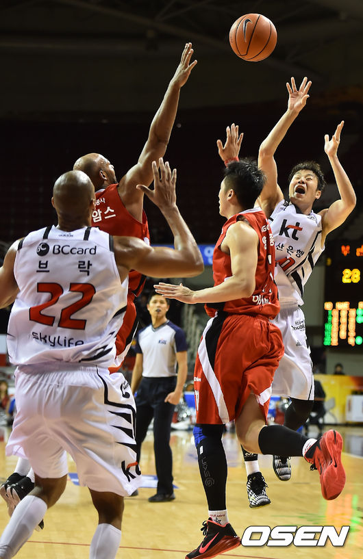 이동남 감독 대행이 이끄는 KGC인삼공사와 전창진 감독이 이끄는 KT가 안양실내체육관에서 2014-2015 KCC 프로농구 정규리그 4라운드 맞대결을 갖는다.