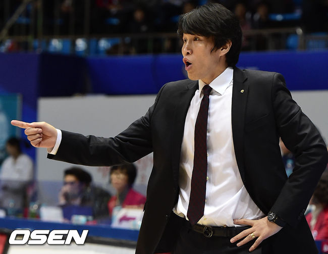 26일 오후 인천 도원체육관에서 열린 '2014-2015 KB국민은행 여자프로농구' 신한은행과 우리은행의 경기, 2쿼터 우리은행 위성우 감독이 작전지시를 하고 있다.