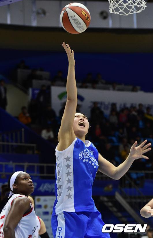 26일 오후 인천 도원체육관에서 열린 '2014-2015 KB국민은행 여자프로농구' 신한은행과 우리은행의 경기, 4쿼터 우리은행 양지희가 레이업슛을 시도하고 있다.